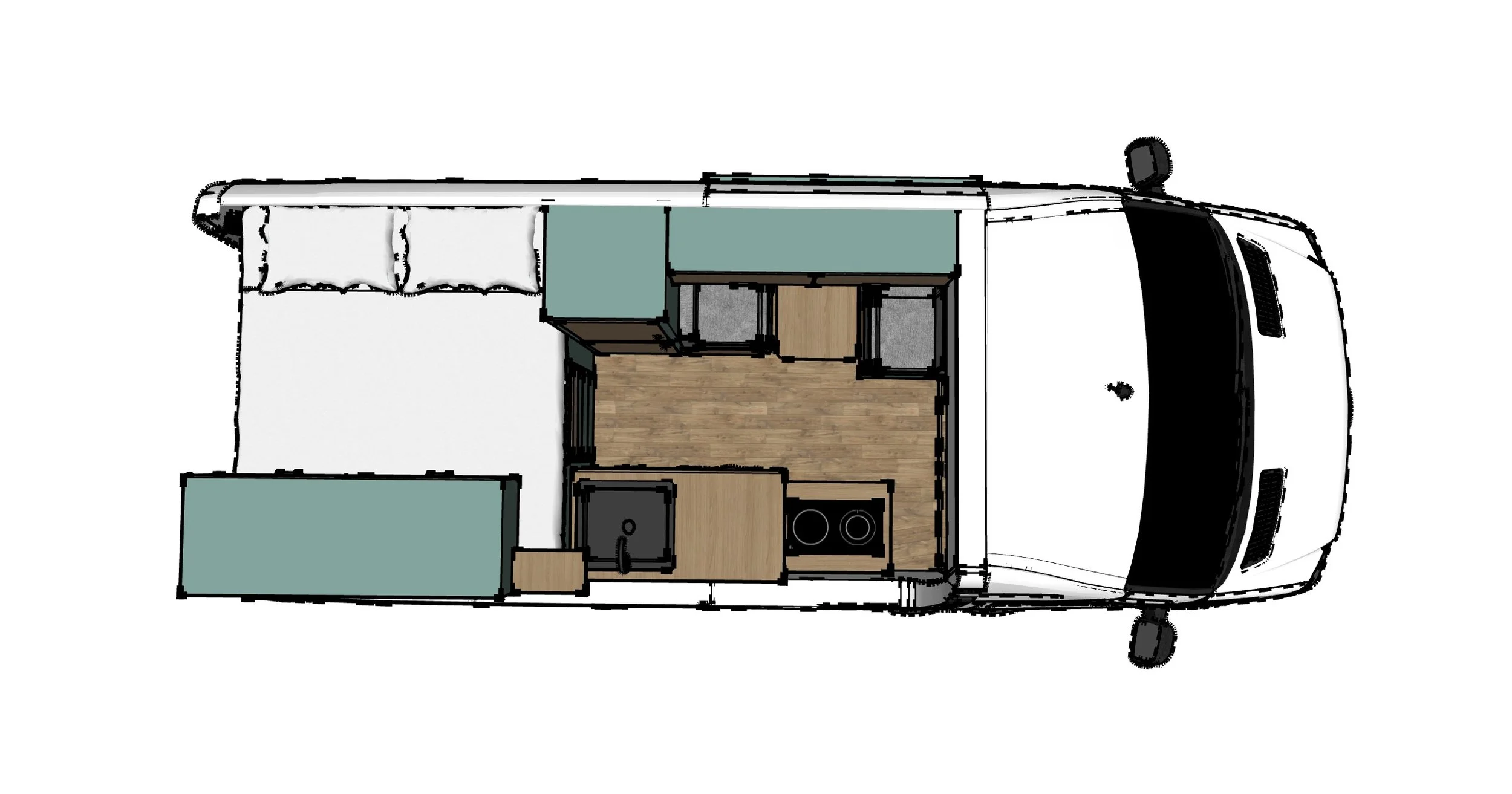 Note: We are a van conversion company and the blueprints shown require you to bring your own van. If you need help finding a van we have close relationships with trusted dealerships.